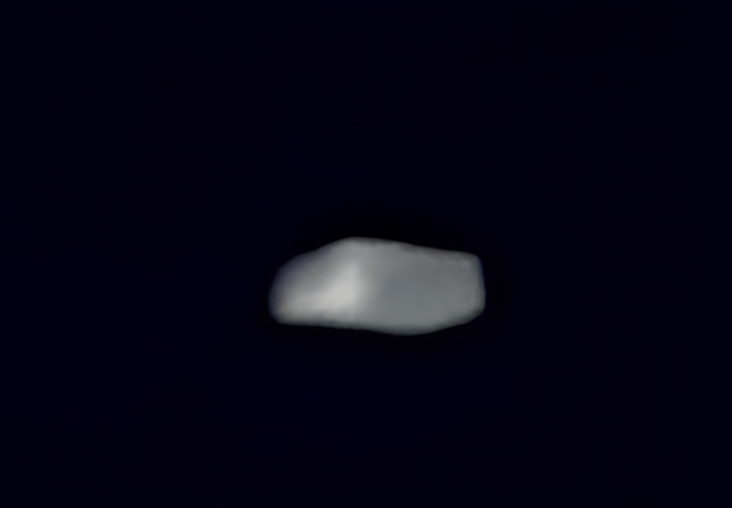 Il est intéressant de noter sa formation au moment où il se densifie (aspect noir et flou) et sa forme finale une fois matérialisé (blanc de type tic tac).